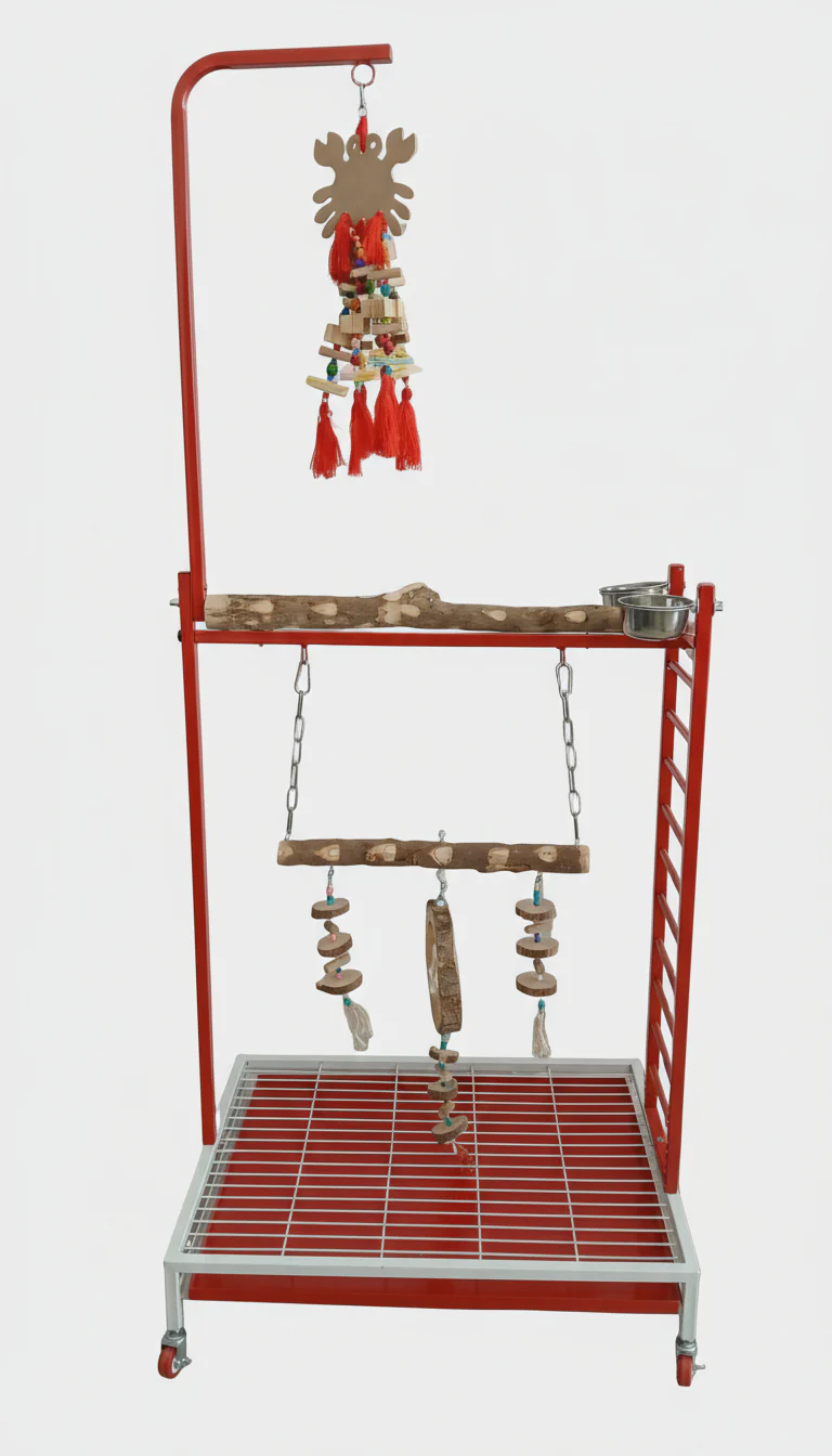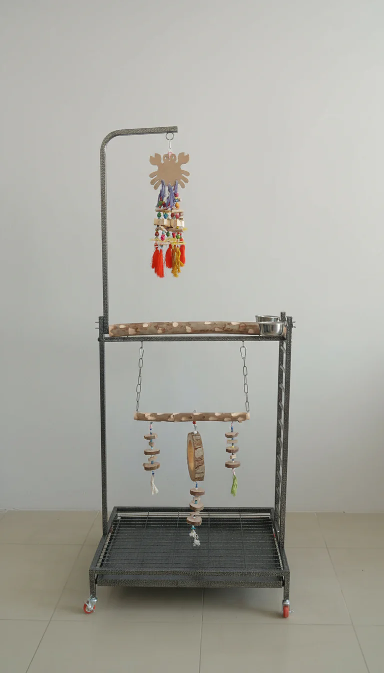 This sturdy bird stand combines premium steel framework with natural wood perching surfaces, designed to accommodate multiple birds comfortably. Standing at an impressive 82x200cm, it provides ample space for exercise and social interaction. The robust steel construction ensures stability and longevity, while the wood elements offer secure footing and natural grip for your feathered companions. Ideal for aviaries, bird sanctuaries, or dedicated bird rooms, this stand supports healthy bird behavior and creates an engaging environment. Perfect for parrots, macaws, and other large bird species requiring substantial perching infrastructure.